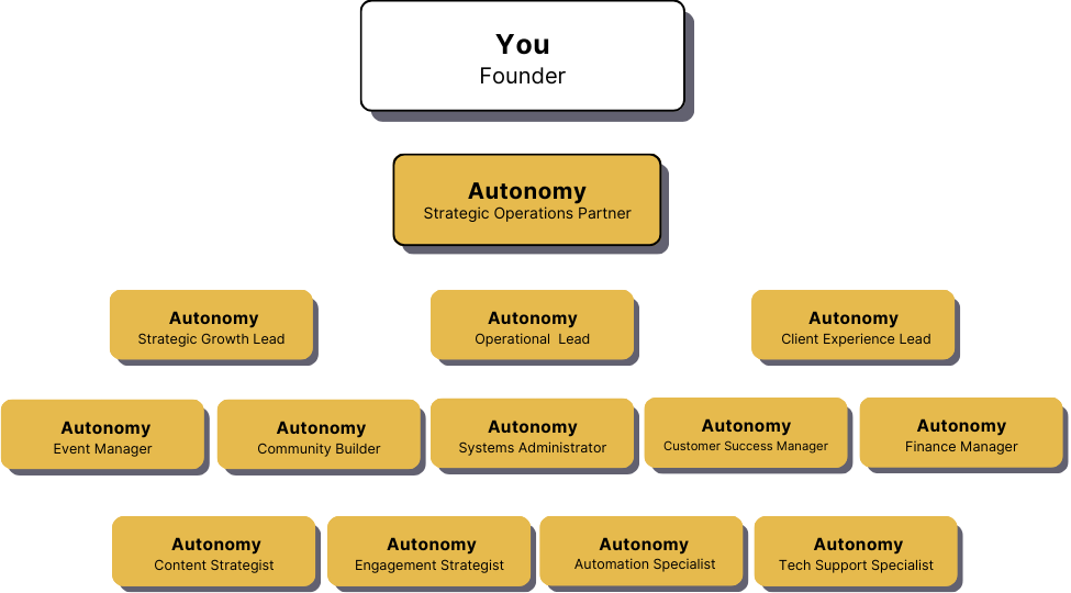 As a solopreneur you are your business's greatest asset, while simultaneously being its greatest bottleneck. Autonomy is your Strategic Operations Partner through systems, operations and strategy.